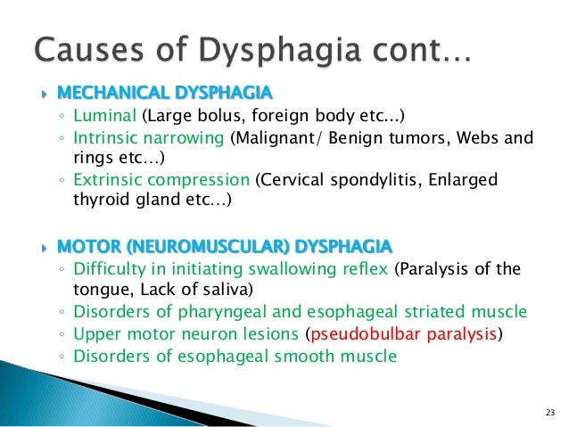 It occurs when the muscles and nerves that help move food through the throat and esophagus are not working right. Certain muscular dystrophies, inflammatory myopathies, and mitochondrial myopathies all can display dysphagia, as can disease processes affecting the. Ampcares ESP provides clinicians a new alternative for treating patients who suffer from swallowing difficulties, also known as dysphagia. Diagnosis A physician will examine the patient and take a medical and family history. Compensatory techniques alter the swallow when used but do not create lasting functional change).
